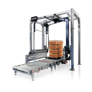 - Fully automatic machines: These machines come with conveyors and the machine automatically wraps the pallet with stretch film, secures the end of the film, and then discharges the wrapped pallet.